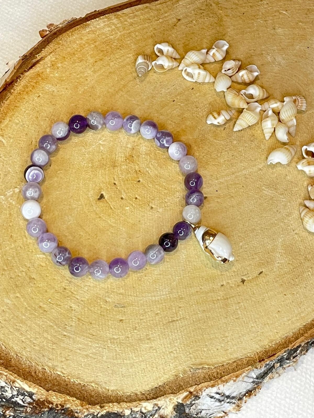 De schelpen brengen de zachte, vloeiende energie van de zee, terwijl de edelstenen je verbinden met de kracht van de aarde.