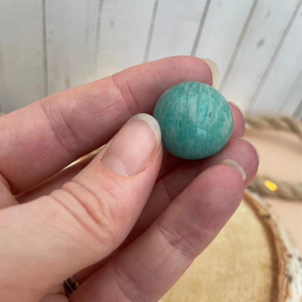 Deze amazoniet trommelsteen is zo’n fijne “ademruimte”-steen. Amazoniet staat bekend om zijn filterende en kalmerende energie: alsof hij ruis zachter zet, zodat jij weer kunt voelen wat van jou is (en wat niet). Perfect voor drukke dagen, een vol hoofd of als je gevoelig bent voor prikkels.