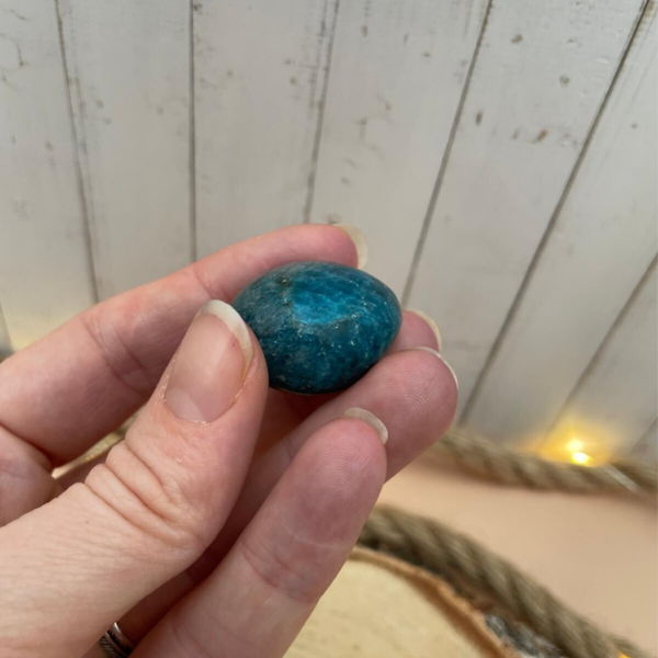 Deze blauwe apatiet trommelsteen voelt als een frisse bries door je hoofd én je hart. Apatiet staat bekend als een steen die bewustzijn en inzicht stimuleert en je helpt om weer verbinding te maken met wat voor jou klopt. Fijn als je veel nadenkt, snel in twijfel schiet of juist behoefte hebt aan richting.