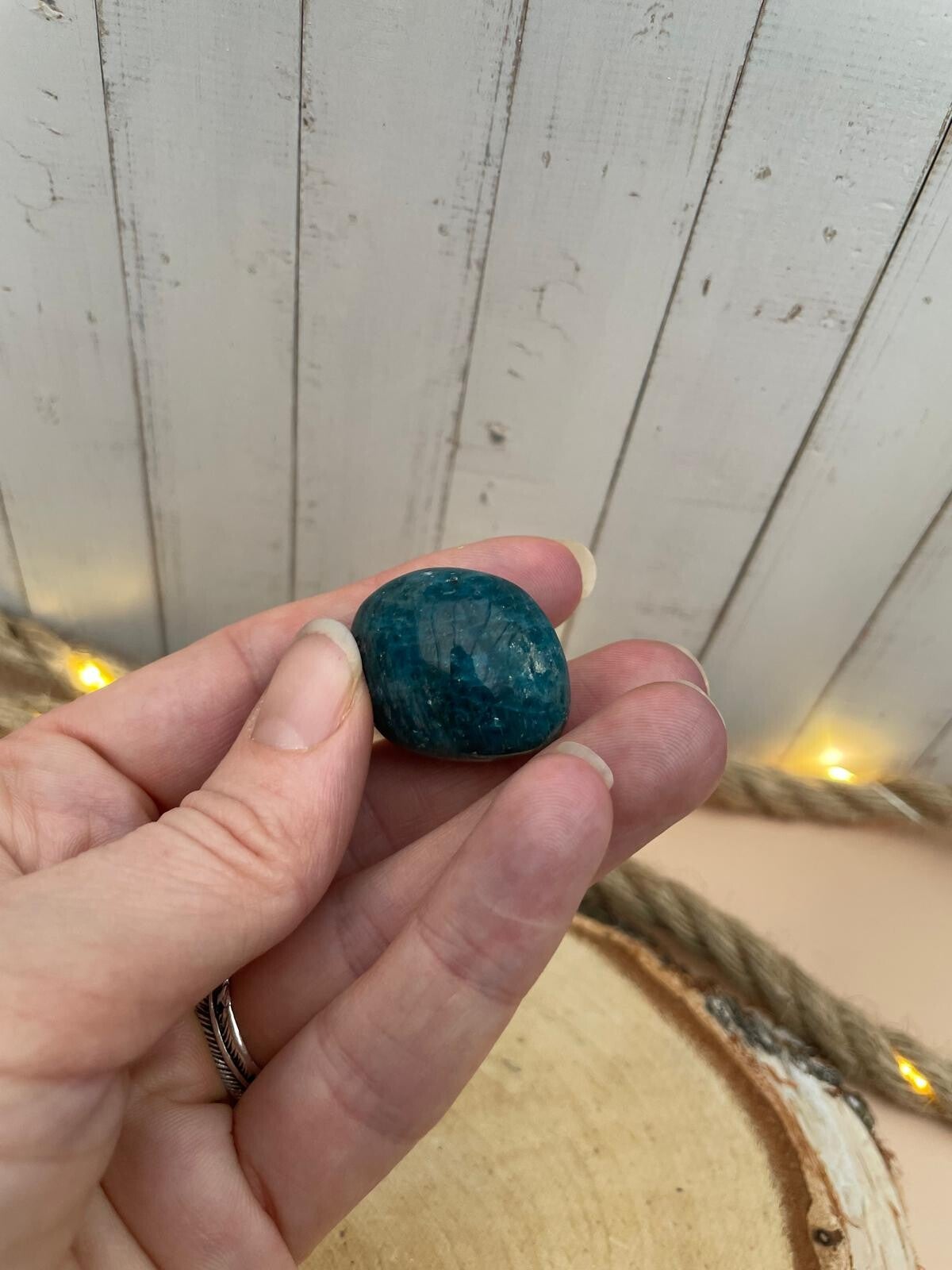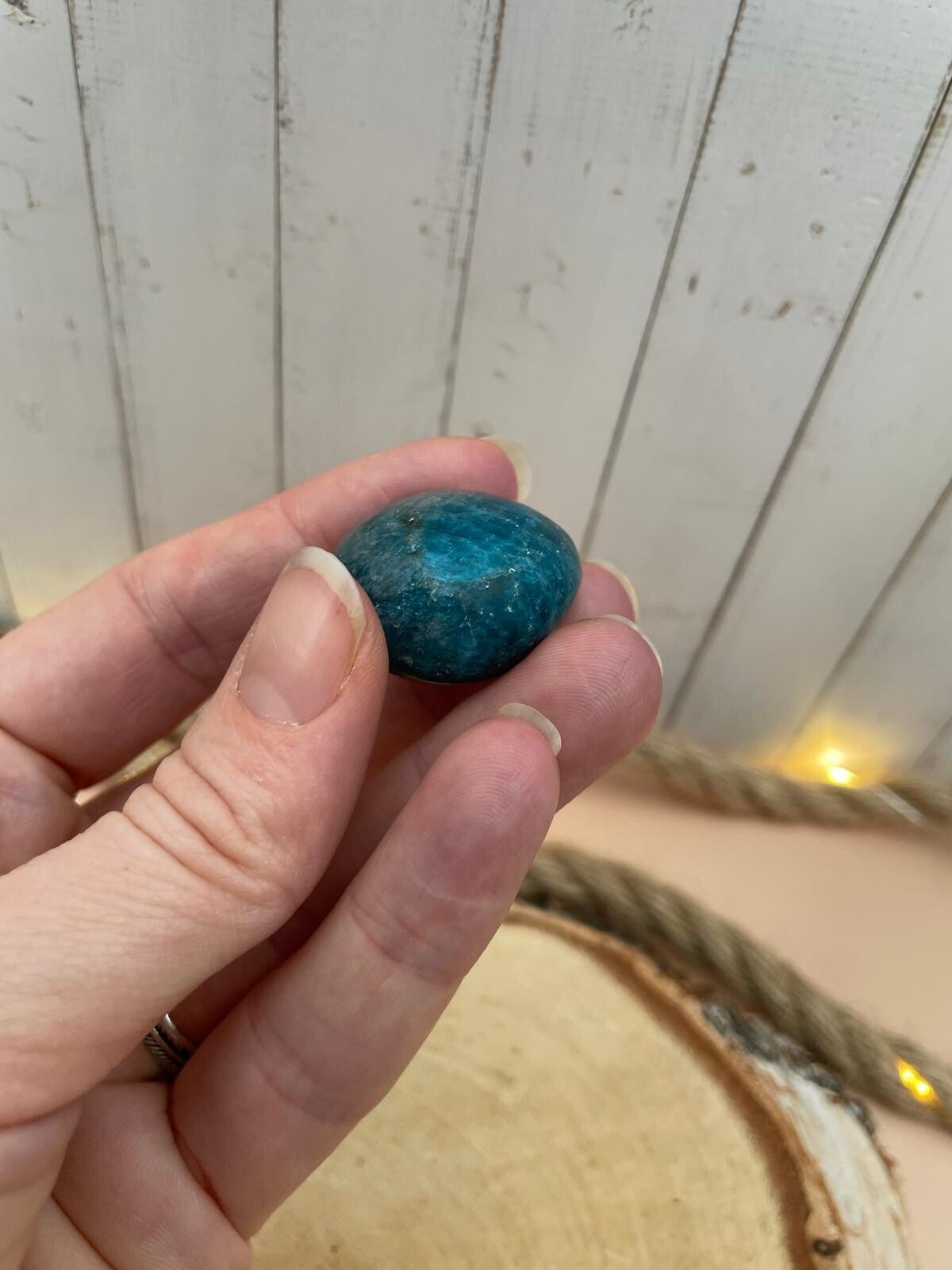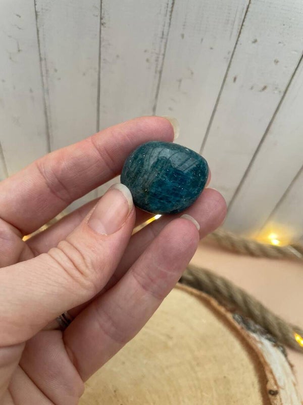 Deze blauwe apatiet trommelsteen voelt als een frisse bries door je hoofd én je hart. Apatiet staat bekend als een steen die bewustzijn en inzicht stimuleert en je helpt om weer verbinding te maken met wat voor jou klopt. Fijn als je veel nadenkt, snel in twijfel schiet of juist behoefte hebt aan richting.